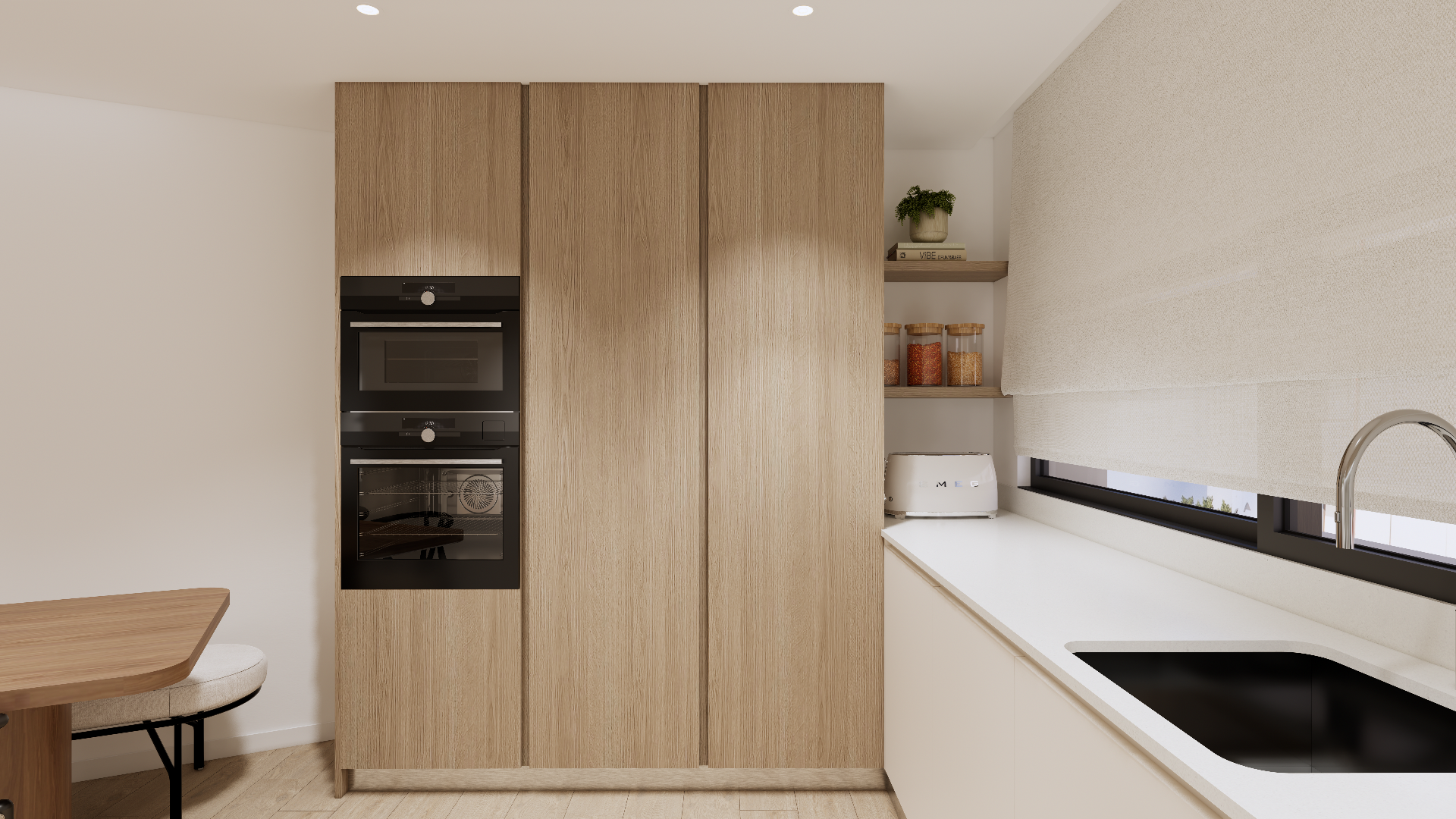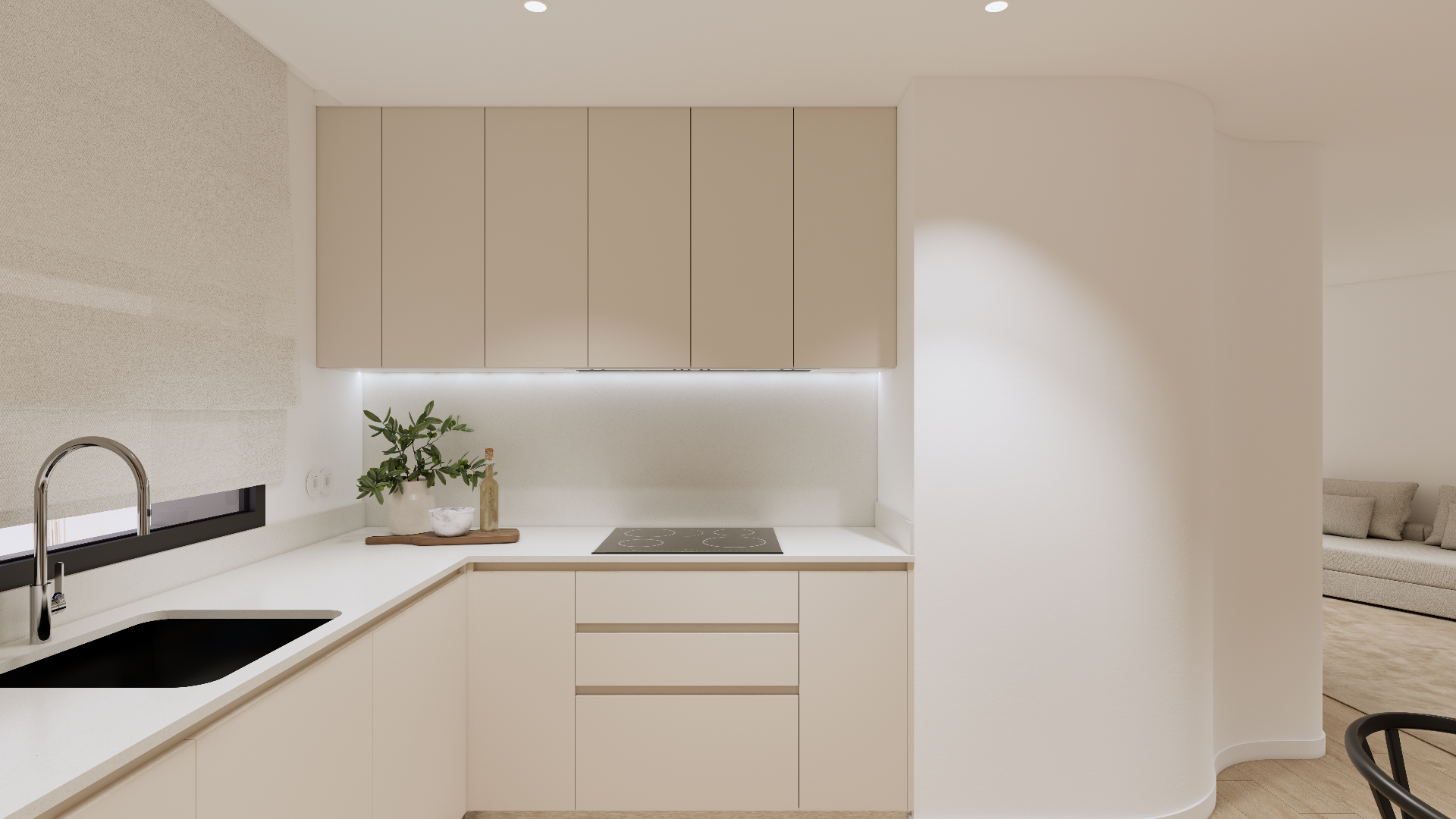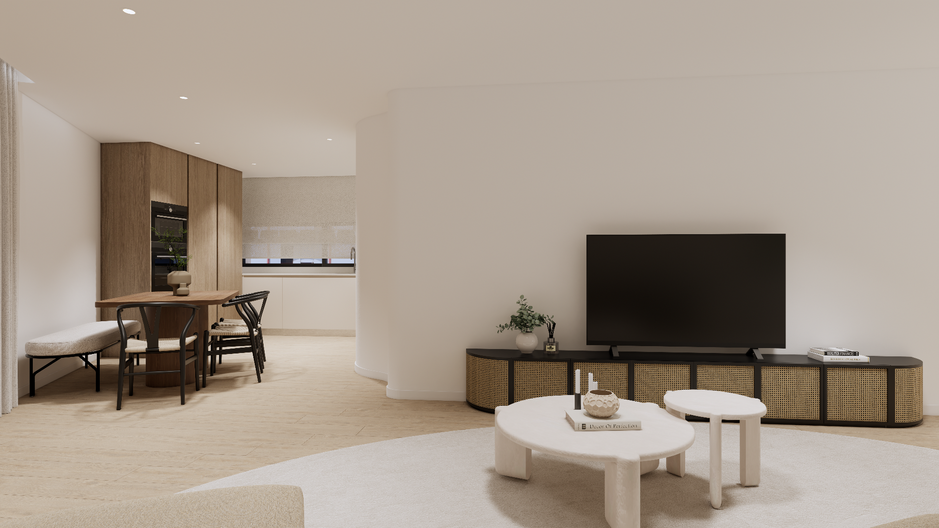A sala, ampla e convidativa, prolonga-se para a varanda, criando um ambiente perfeito para desfrutar da luz natural e da envolvente urbana. Os dois quartos foram projetados para proporcionar descanso e funcionalidade.