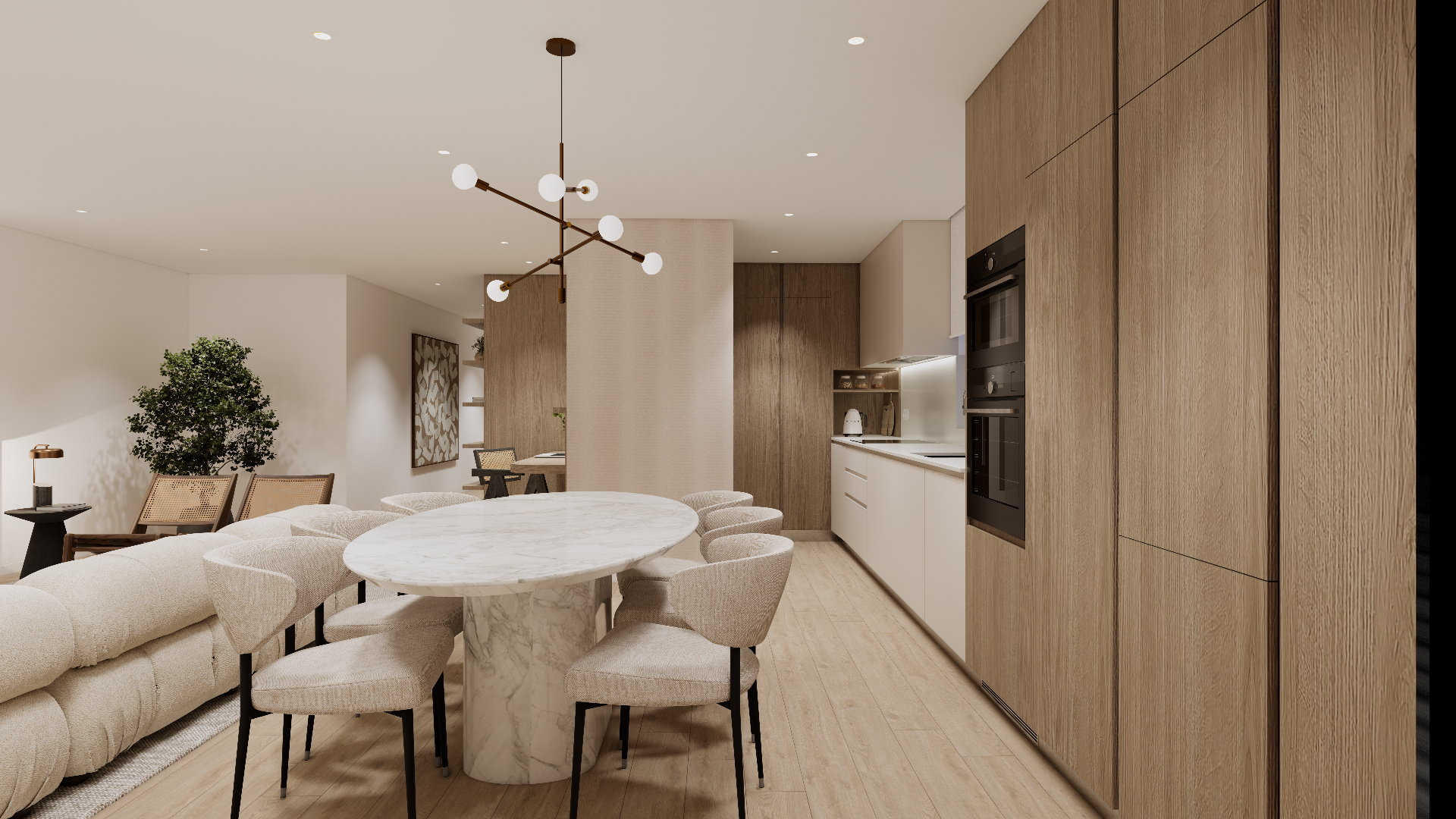 Este apartamento doi concebido para oferecer um equilíbrio perfeito entre funcionalidade, conforto e luminosidade. A sua organização interior privilegia uma circulação fluída entre as áreas social e privada, criando um ambiente acolhedor e contemporâneo.